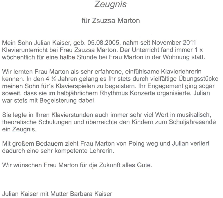 | 2010 - 2016 | Privatunterricht in Poing |