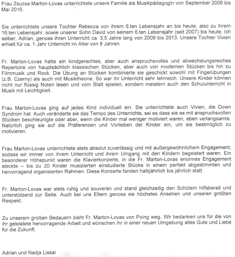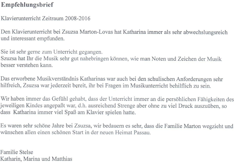 | 2016 - | Privatunterricht in Perlesreut |