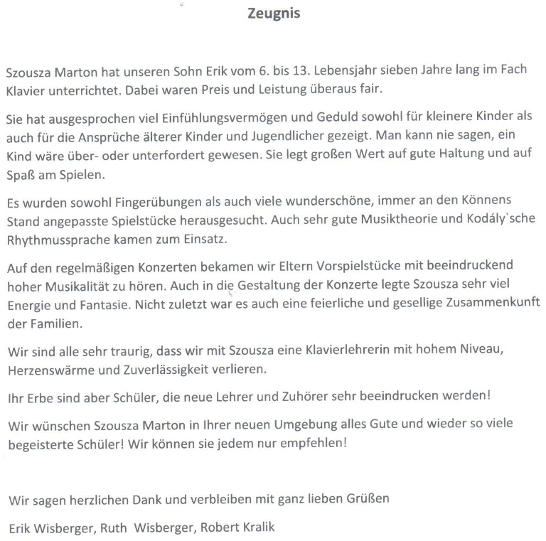 | 1999 - 2001 | Lehrerin in Musikschule Ernö Dohnány, Budapest (Ungarn) |